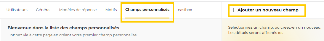 Cliquez sur “champs personnalisés” et “Ajouter un nouveau champ” :