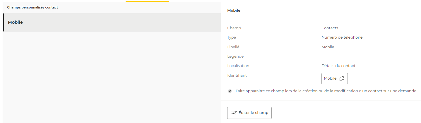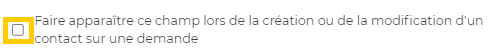 Cela indique le champ personnalisé doit être affiché dans les formulaires d’édition et de création d’un contact depuis une demande.