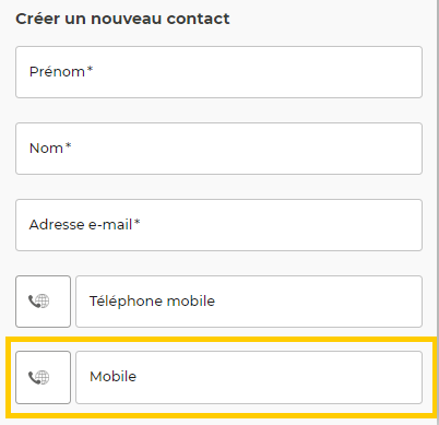 Uniquement pour les champs sur les contacts :