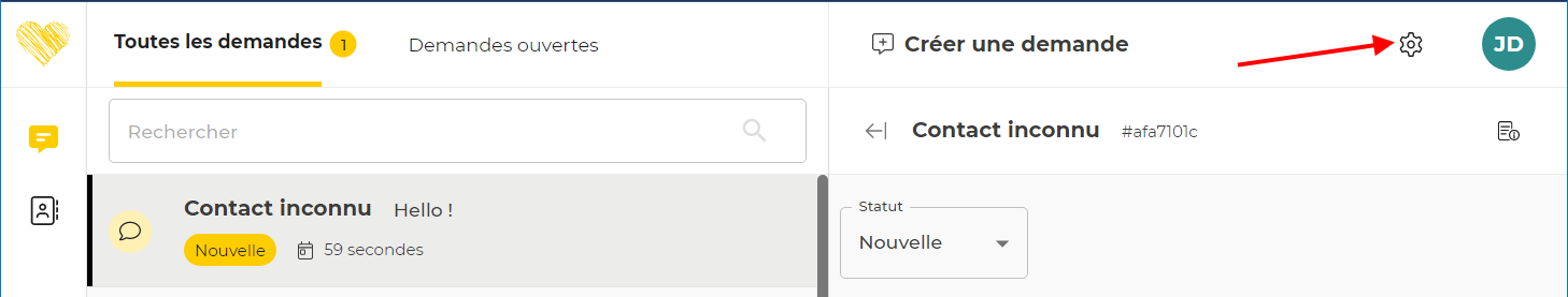 Rendez vous dans la section Configuration en cliquant sur l’icône situé à gauche de vos initiales de profil.