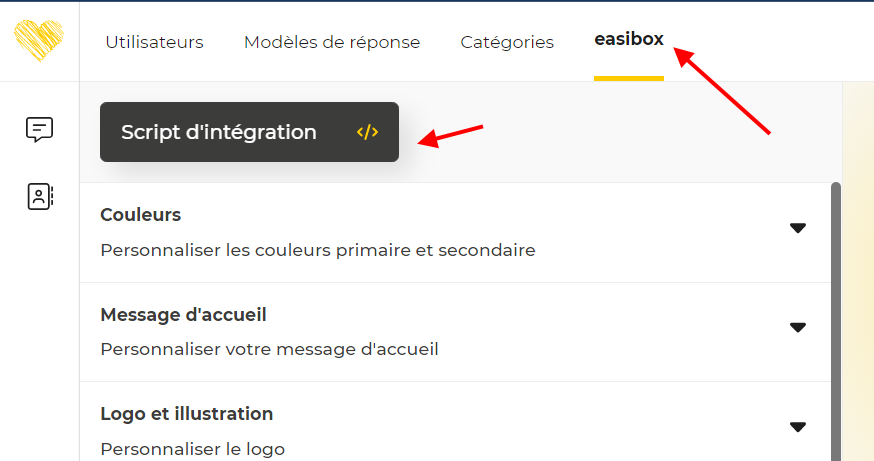 Si vous avez déjà déployé votre easibox, il vous faudra mettre à jour le script d’intégration sur votre site Internet.