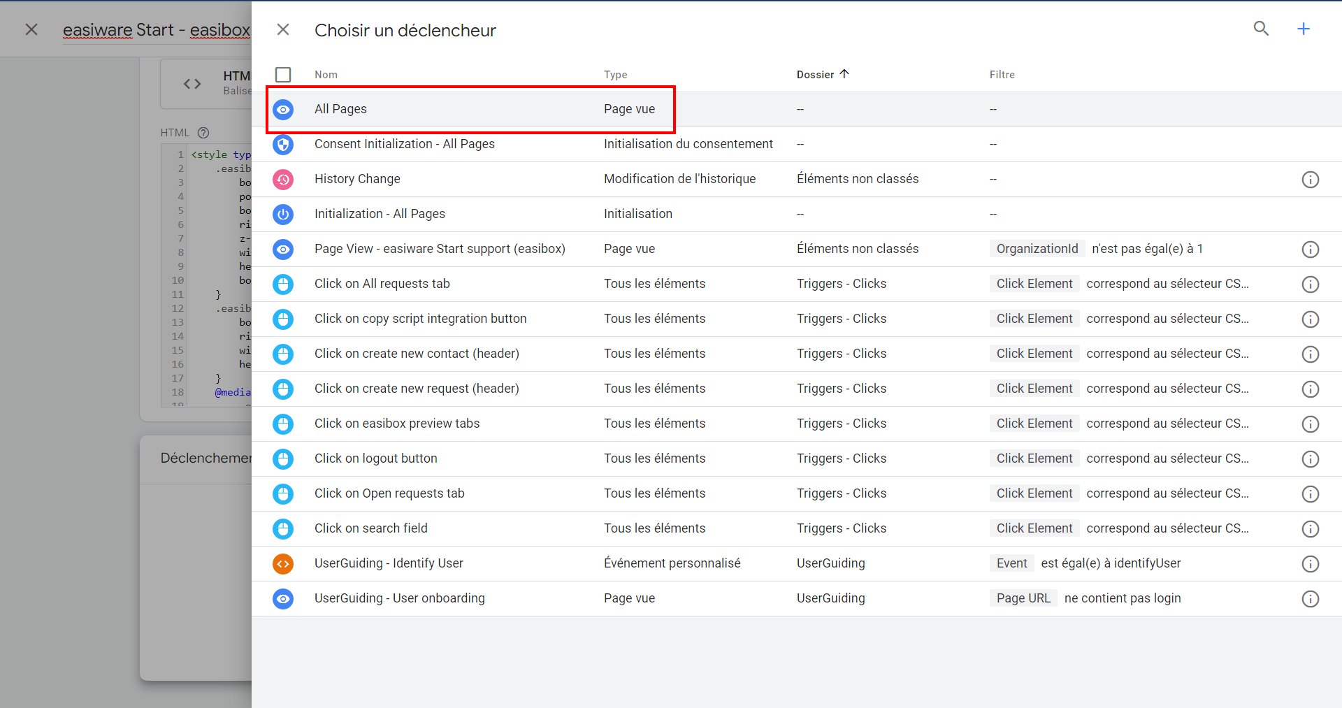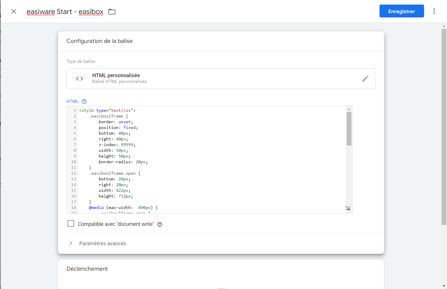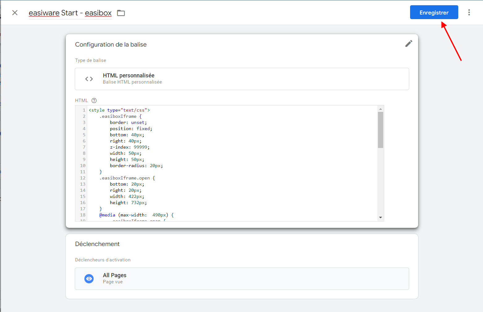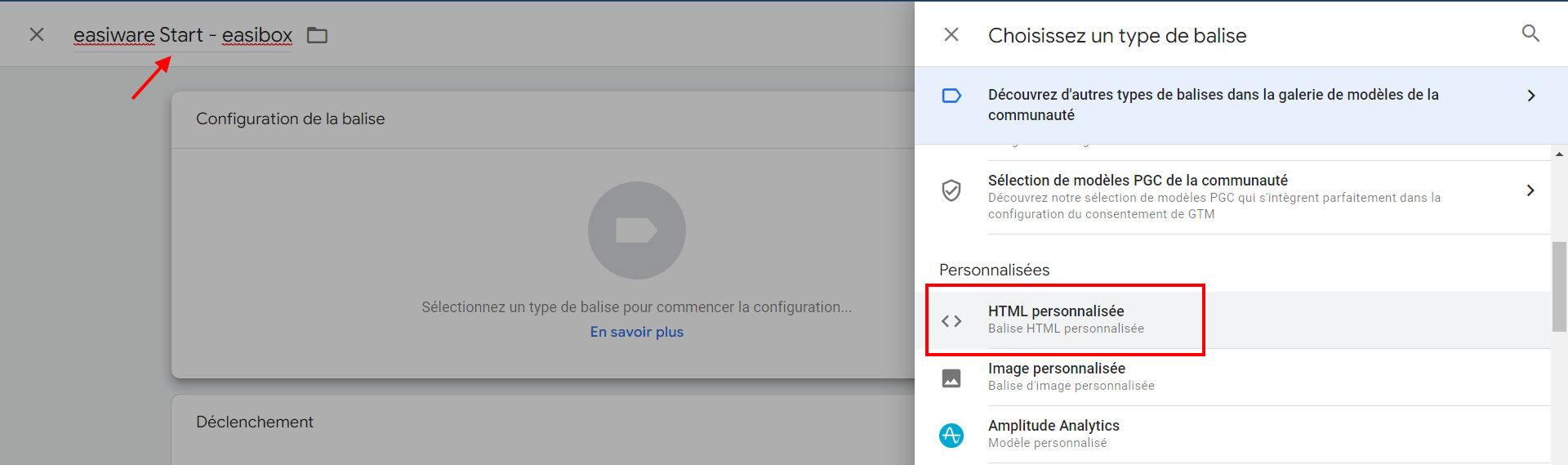 Afin de pouvoir déployer le script d’intégration de votre easibox via GTM, suivez les étapes suivantes: