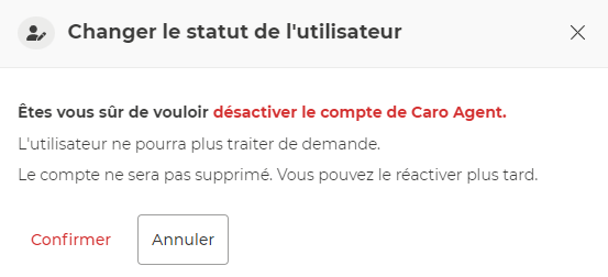Une fenêtre s’ouvre et cliquez sur “confirmer “ pour désactiver l’utilisateur” :