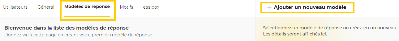 Cliquez sur “modèles de réponse” et “Ajouter un nouveau modèle” :