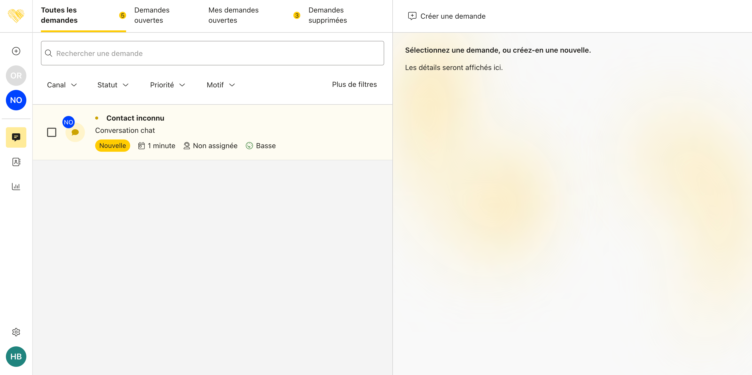 Depuis la page Demandes, lors de la création manuelle d’une nouvelle demande :