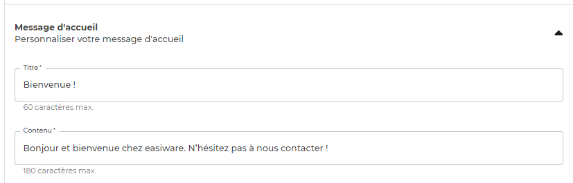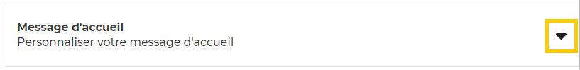 Pour personnaliser votre message d’accueil, ouvrez le menu de la partie “message d’accueil” :