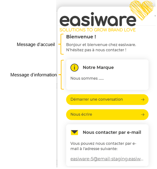 Vous pouvez personnaliser les messages de votre widget sur votre site interne