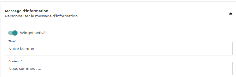 Pour personnaliser votre message d’information, ouvrez le menu de la partie “message d’information” :