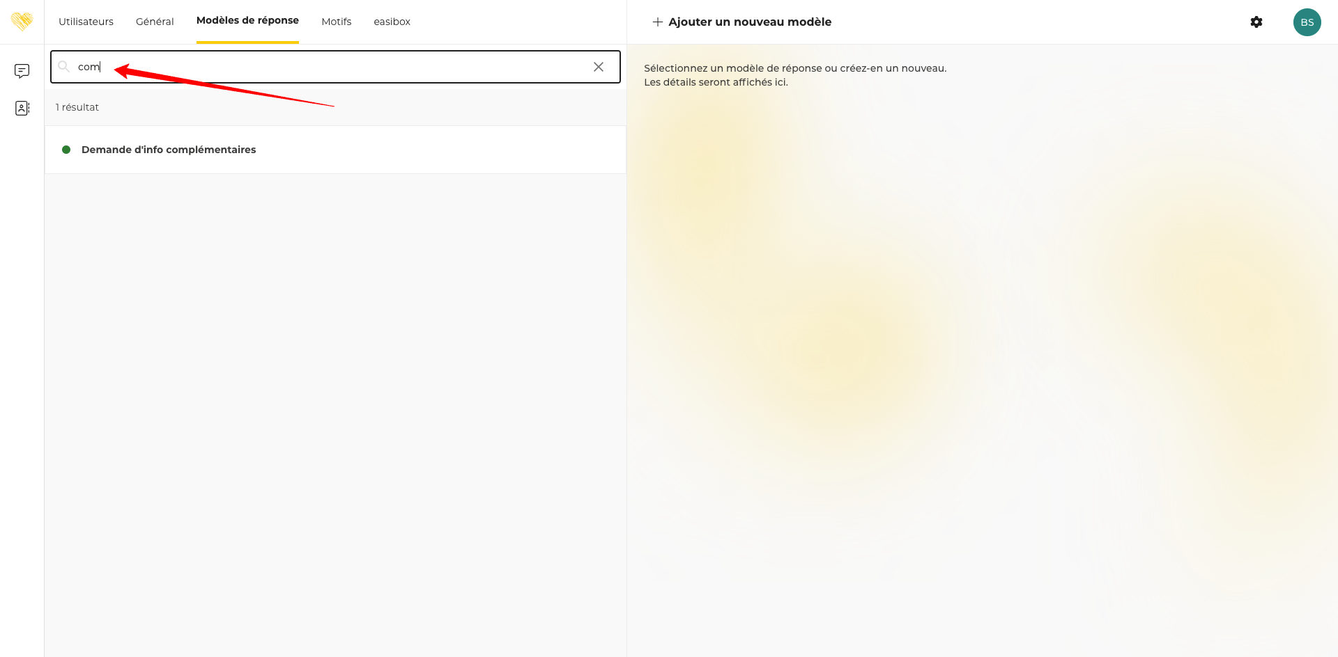 Afin de faciliter l’identification d'un ou plusieurs modèles de réponse dans la liste de tous les modèles visibles dans la page d’administration dédiée, il vous est maintenant possible d’effectuer une recherche via le champ prévu à cet effet.