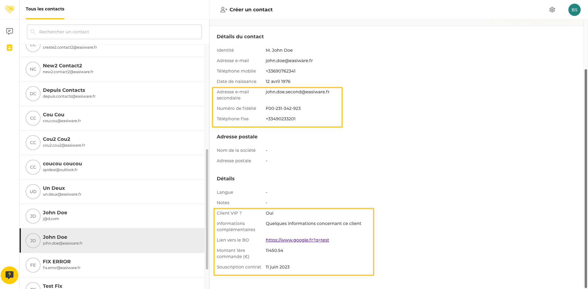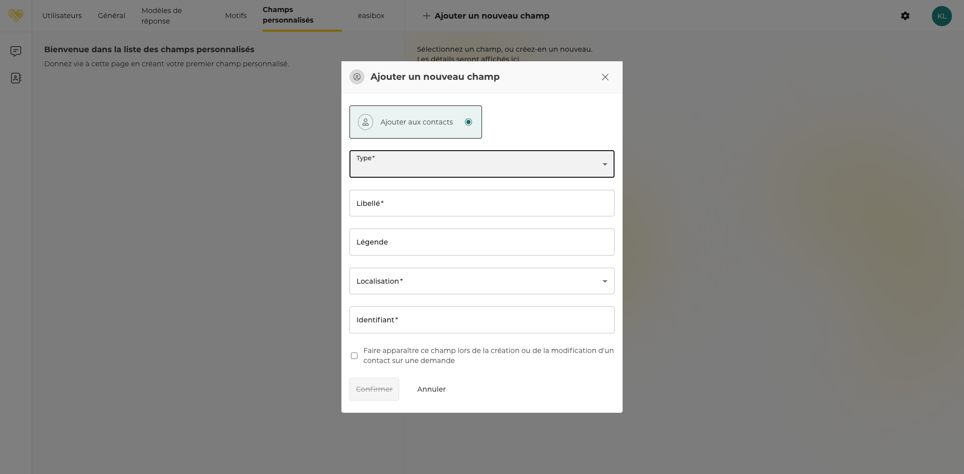 Contacts - Champs personnalisés