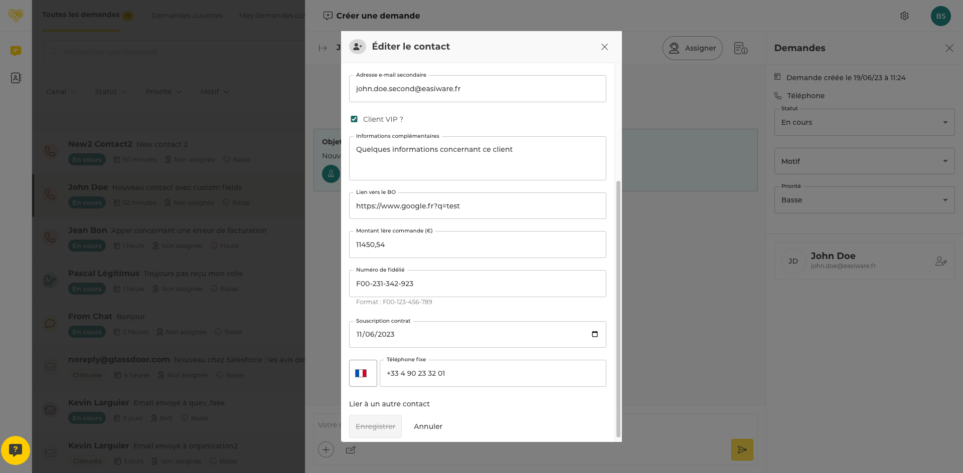 Lors de la création d’une fiche contact depuis la popup de création d’une nouvelle demande.