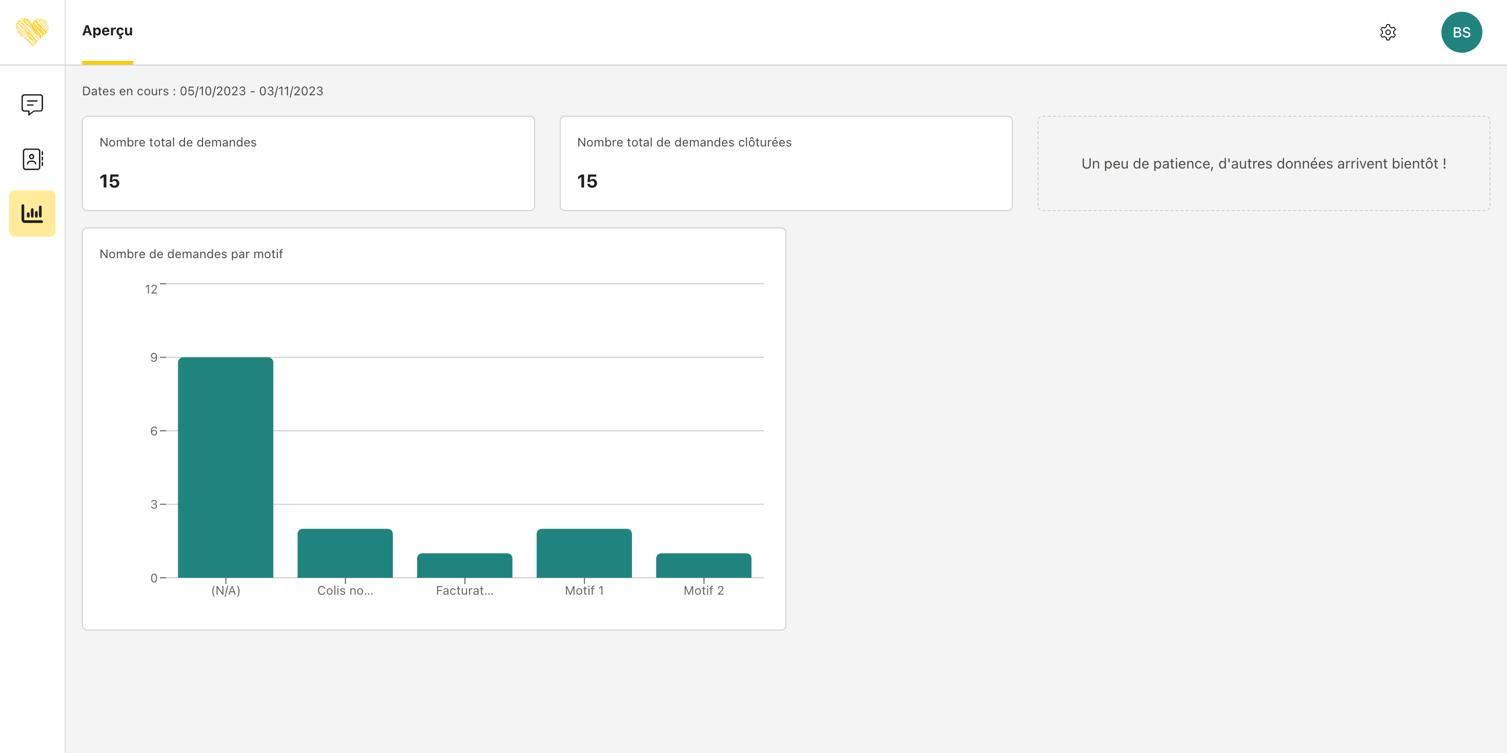 Un nouveau rapport est maintenant disponible dans la page Performances de votre application. Ce dernier vous permet de visualiser le nombre de demandes par motif.