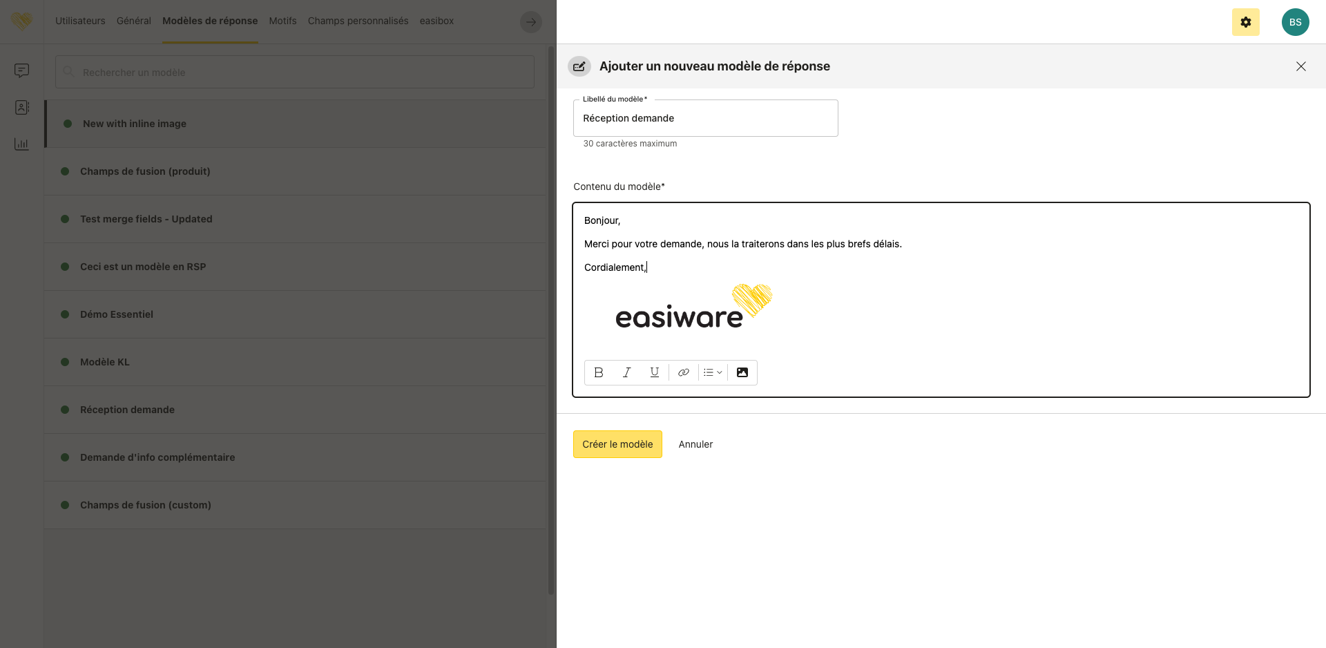 Création d’un modèle de réponse avec une image “inline” insérée