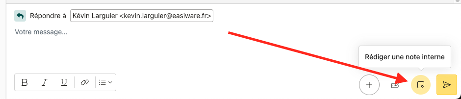Bouton pour passer en mode “rédaction d’une note interne”