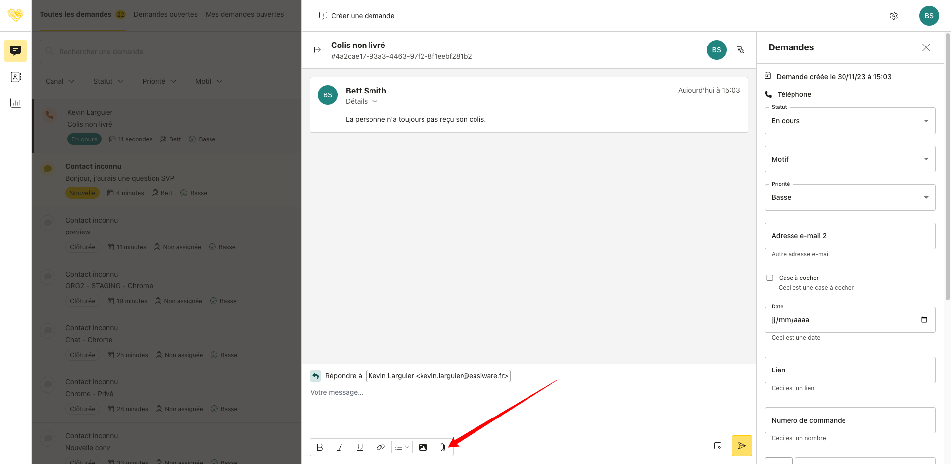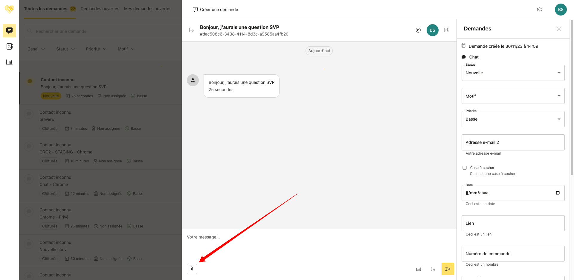 Bouton permettant l’ajout de pièces jointes