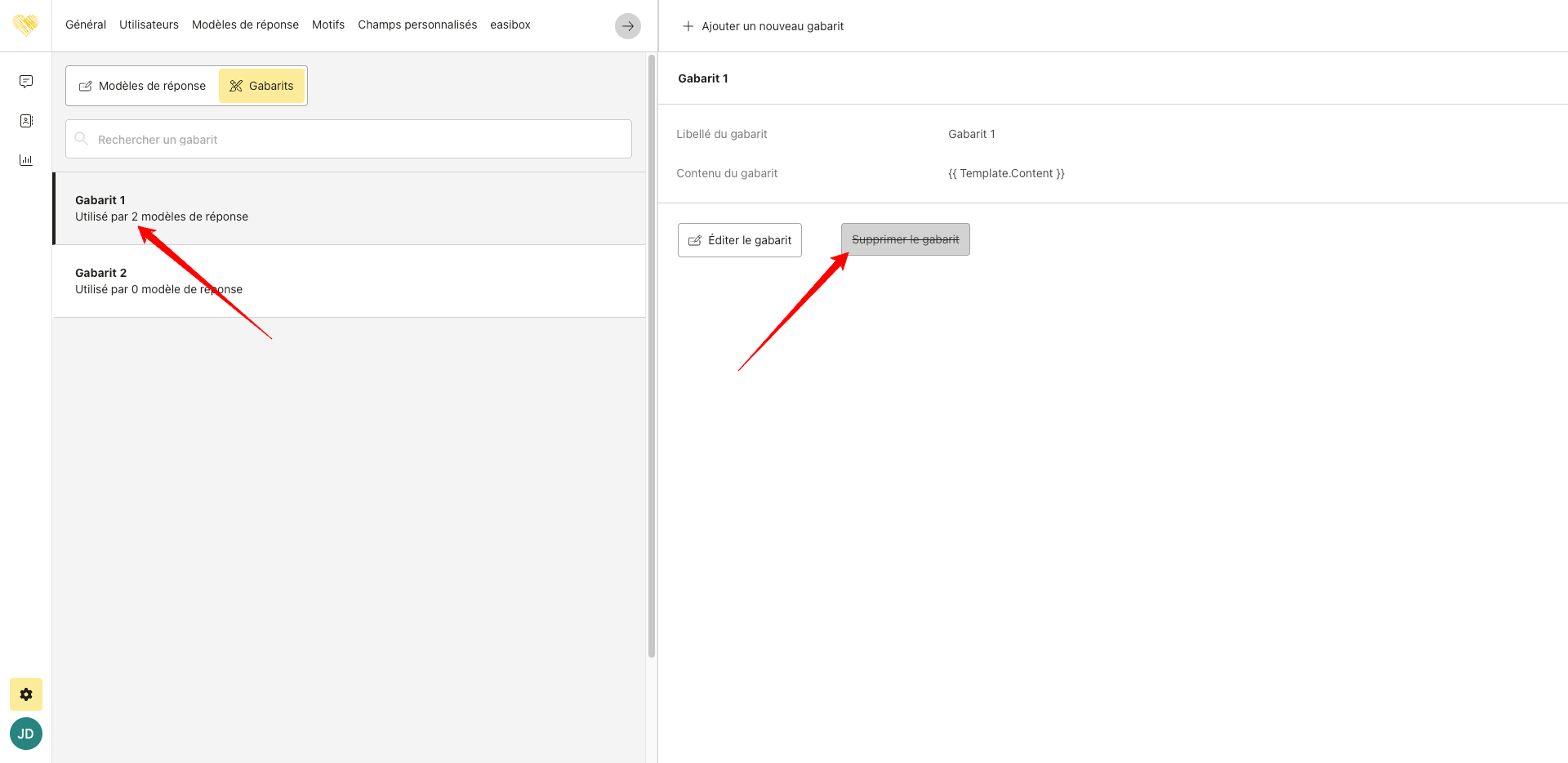 Afin de vous permettre de garder une application ne contenant que des données pertinentes, vous avez maintenant la possibilité de supprimer un gabarit à partir du moment que ce dernier n’est pas utilisé par un modèle de réponse.