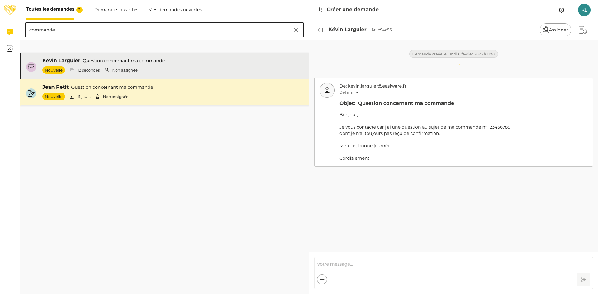 Recherche “commande” dans l’onglet Toutes les demandes
