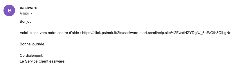 Dans nouvelle version d’easiware Start, les liens contenus dans les e-mails sortants à destination de vos contacts sont dorénavant interprétés en tant que liens HTML et affichés comme tel dans le service de messagerie de votre contact.