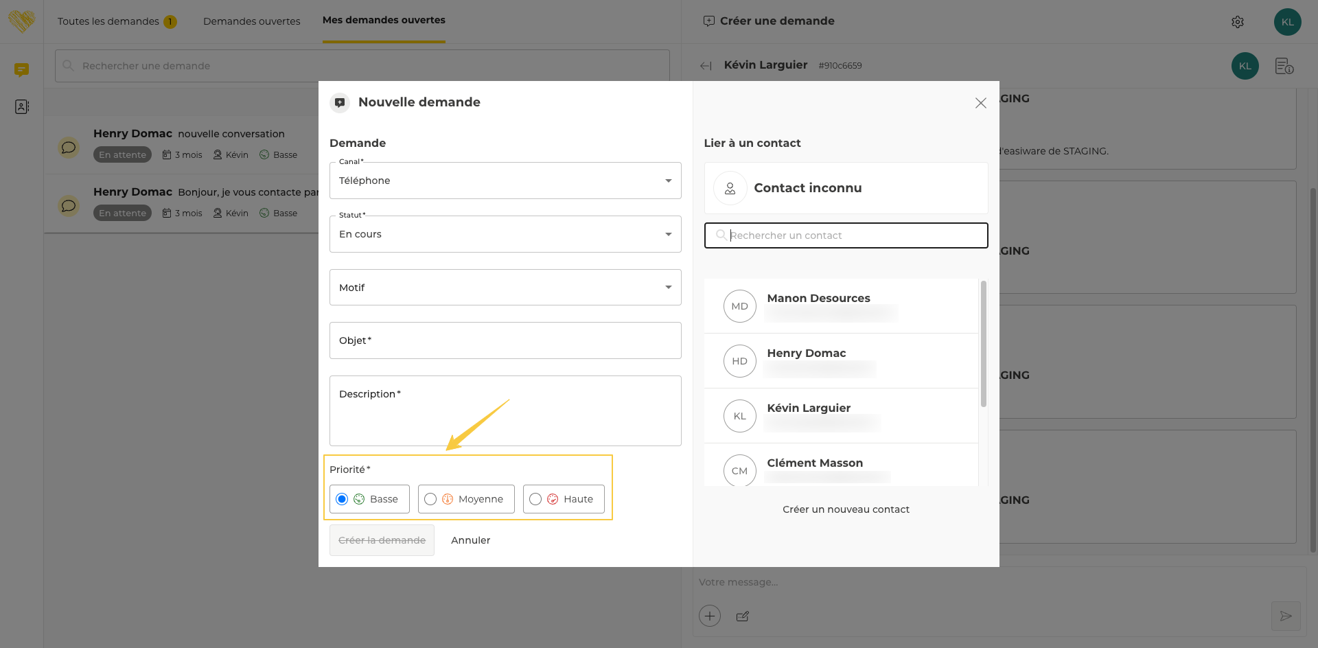 ℹ️ Par défaut, la priorité d’une demande est définie sur Basse.