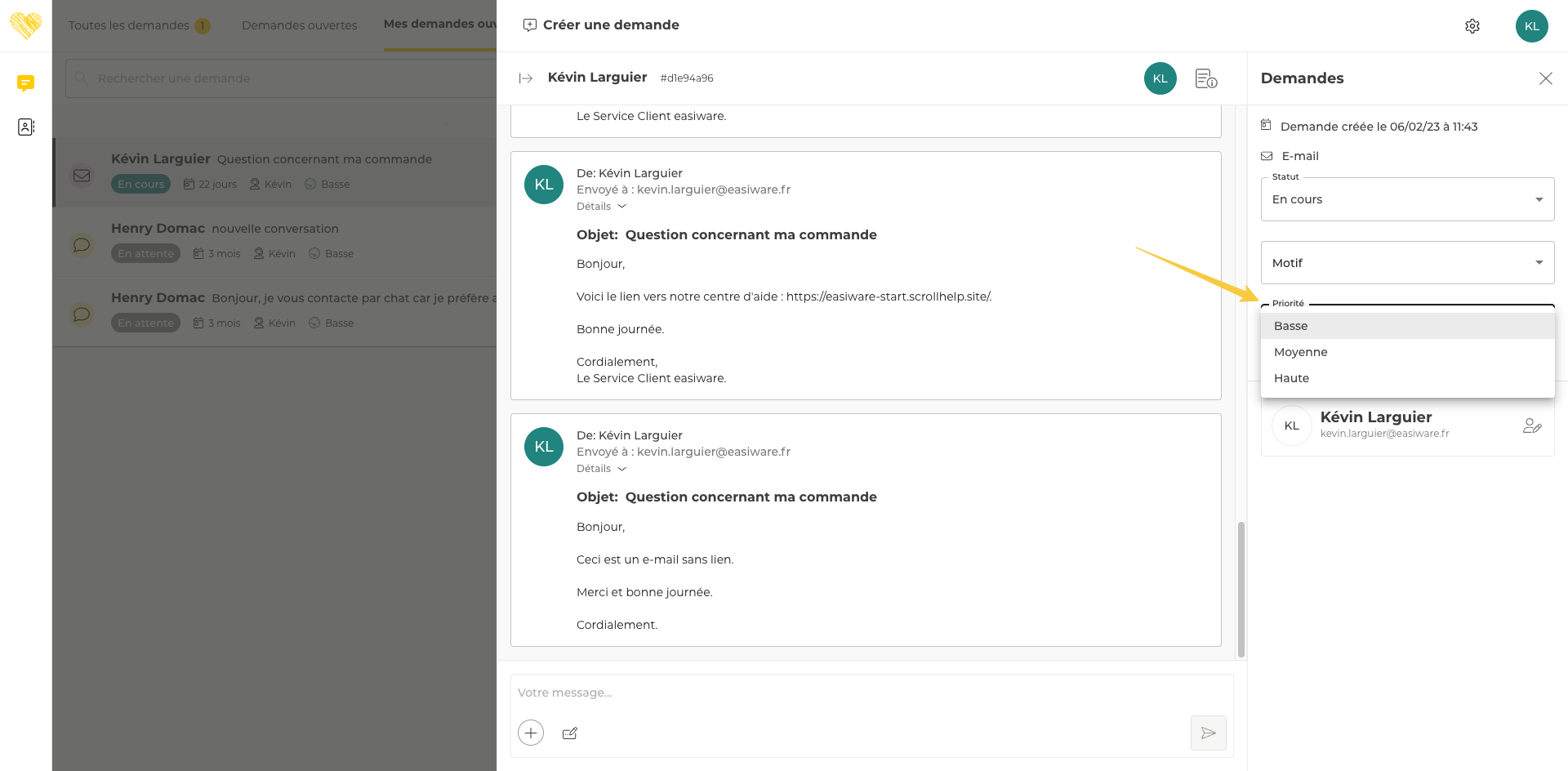 Vous souhaitez optimiser le traitement de vos demandes et vous concentrer sur les plus urgentes ? C’est maintenant possible grâce à l’ajoute de la notion de priorité sur les demandes. 3 valeurs sont disponibles : Basse, Moyenne, Haute.