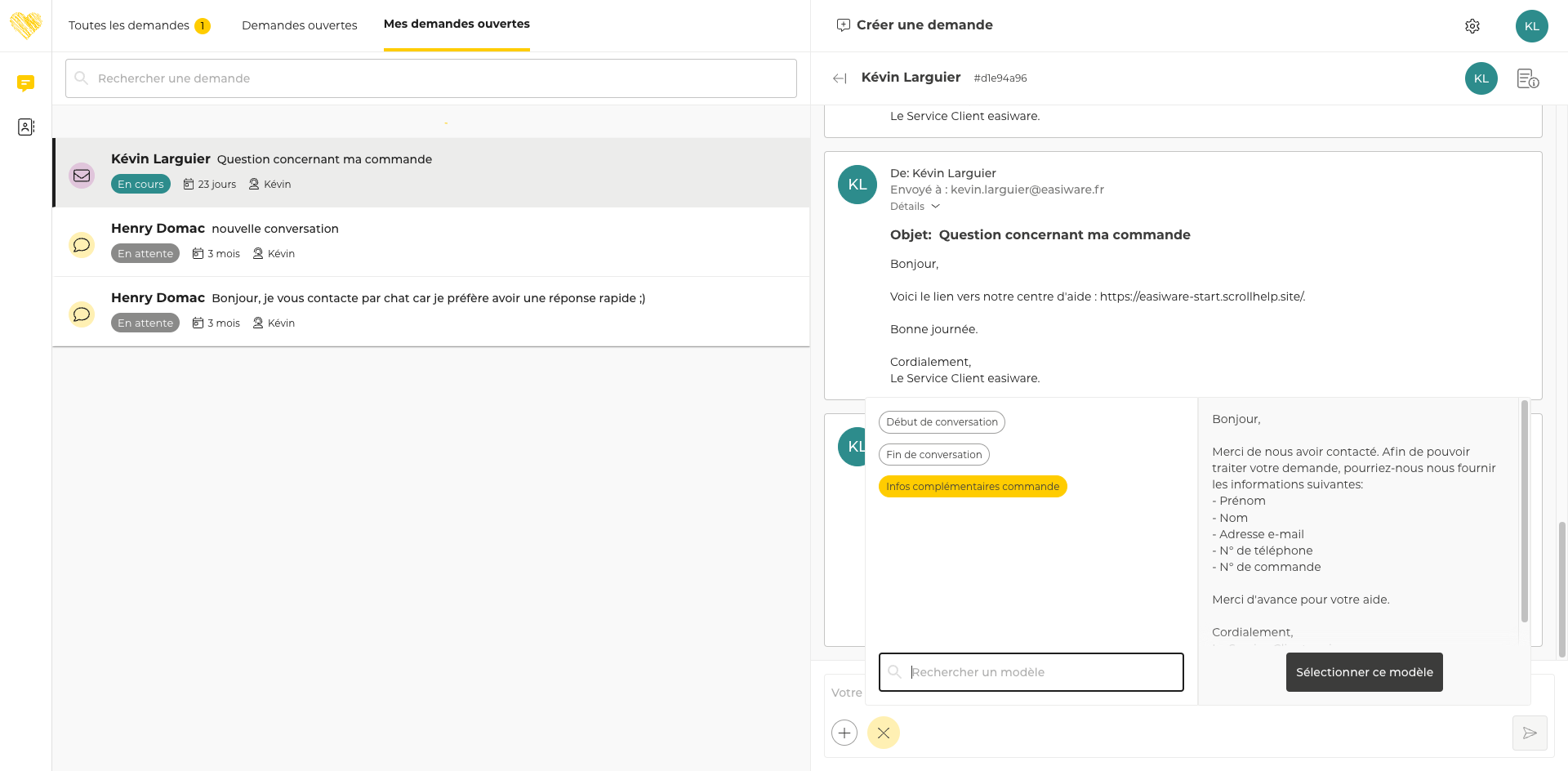 Afin de faciliter le traitement de vos demandes et vous accompagner dans l’amélioration de votre productivité, nous intégrons dans cette nouvelle version d’easiware Start le support des modèles de réponses !