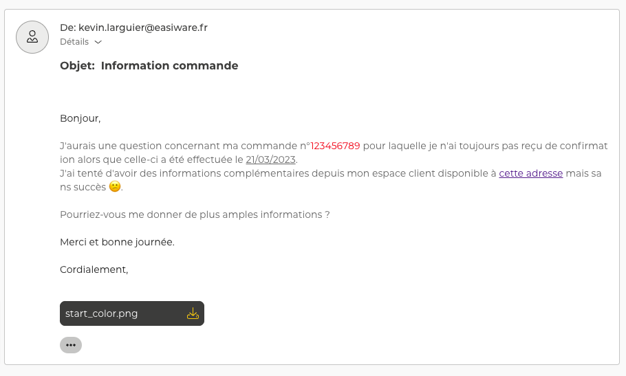 Avec cette nouvelle version d’easiware Start, nous introduisons le support de la version HTML des e-mails entrants. Cette nouveauté permet de répondre à 2 besoins :