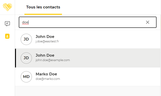 Vous avez la possibilité de rechercher un contact parmi la liste de tous les contacts en base via le champ de recherche dédié: